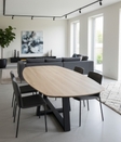 ARCUS — дизайнерський обідній стіл з овальною стільницею з масиву дерева на металевій основі. Мінімалістична форма, ідеальні пропорції та відчуття простору роблять його центром сучасного інтер’єру.Виготовляється під замовлення з можливістю індивідуального вибору розмірів, відтінку деревини та покриття.